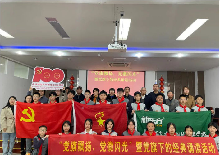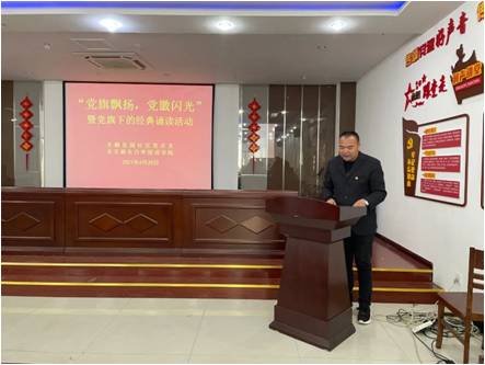 為教育和引導廣大黨員緬懷紅色崢嶸歲月,領略紅色文化魅力,傳承紅色永恒經典,4月20日下午,天順花園社區(qū)黨總支和萬楊物業(yè)黨支部天順花園黨小組聯(lián)合北京新東方揚州外國語學校開展“黨旗飄揚,黨徽閃光”暨黨旗下的經典誦讀活動。