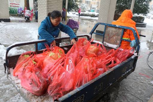 1月4日早上9點左右,天空飄著大雪,萬楊物業(yè)文昌花園項目部看到地上落滿厚厚的積雪,心中想到住在文昌花園小區(qū)內(nèi)的那些肢體殘疾、行動不方便老人,在這樣惡劣的天氣下,他們的日常生活怎么辦。結(jié)合這樣的考慮,文昌花園物業(yè)與社區(qū)迅速聯(lián)系商家采購到豬肉、白菜、豆干、青菜等食品送到曹子禮、王國珍、呂秀英、張遐昌、葛松圣等19戶業(yè)主家中進(jìn)行慰問,叮囑他們在這樣的天氣下不要出門防止滑倒,注意家中水電、燃?xì)獾陌踩褂貌⒘粝铝宋飿I(yè)客服電話,交待他們遇到困難時拔打,物業(yè)會安排人員上門幫他們解決。每到一戶業(yè)主都很感激,感謝物業(yè)和社區(qū)在寒冷的天氣送來了溫暖。(文昌花園 俞莉莉)