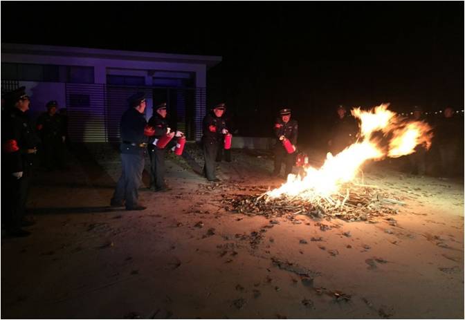 演練開始時(shí),物管處負(fù)責(zé)人就此次活動(dòng),從三個(gè)方面進(jìn)行了指導(dǎo)性講話:1、開展森林火災(zāi)消防演練重要性的學(xué)習(xí)宣傳,明確此次活動(dòng)是中央公園項(xiàng)目安全工作的重要組成部分,是前期系列安全大檢查的延續(xù)和補(bǔ)充,要求隊(duì)員們?cè)谒枷肷辖y(tǒng)一認(rèn)識(shí),要具有安全工作的高度責(zé)任感和使命感;2、開展了“四懂四會(huì)”基本常識(shí)的宣講,懂樹林、蘆葦蕩火災(zāi)的危害性、懂防火災(zāi)的措施、懂滅火的方法、懂逃生的方法,會(huì)報(bào)警(TeL:119)、會(huì)使用消防器材、會(huì)撲救初期火災(zāi)、會(huì)組織人員疏散;3、火災(zāi)實(shí)例解析:2017年初,園區(qū)蘆葦蕩火災(zāi),項(xiàng)目從發(fā)現(xiàn)火情到投入滅火,投入的人員和滅火器材力度應(yīng)該很大,但是由于隊(duì)員實(shí)戰(zhàn)經(jīng)驗(yàn)不足,最后還是專業(yè)人員到場(chǎng)才解除了火情。事后分析,專業(yè)消防隊(duì)員就地取土滅火的辦法,遠(yuǎn)優(yōu)于手持式滅火器使用效果。