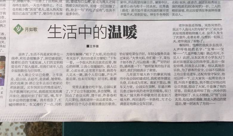 2017123日,揚(yáng)州晚報(bào)A12夕陽(yáng)紅版面,報(bào)道了一篇退休老同志王懷德老人掇寫的《生活中的溫暖》文章。文中較大篇幅提到了江蘇萬(wàn)楊物業(yè)駐中央公園項(xiàng)目,保安隊(duì)員樂于助人的事跡,引起了項(xiàng)目全員的共鳴——“好樣的,萬(wàn)楊保安!”
