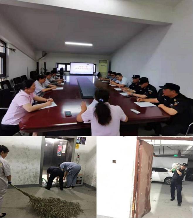 防汛演習(xí)前,項(xiàng)目處召開了專題會(huì)議,詳細(xì)部署了每個(gè)崗位及每個(gè)員工的工作重點(diǎn),下午4點(diǎn),防汛演習(xí)準(zhǔn)時(shí)開始,監(jiān)控室人員發(fā)現(xiàn)10號(hào)樓地下室有漫水現(xiàn)象,立刻用對(duì)講機(jī)呼叫巡邏保安前去查看,巡邏保安查看后發(fā)現(xiàn)因雨水較大,污水泵來(lái)不及自動(dòng)抽水,為防止雨水滲入電梯井,巡邏崗立刻用對(duì)講機(jī)將這一情況向應(yīng)急小組組長(zhǎng)孫娟匯報(bào),孫娟當(dāng)機(jī)立斷,安排保安人員將備用沙包堵住電梯口,工程人員在現(xiàn)場(chǎng)操作,將自動(dòng)抽水改為人工抽水,加快抽水的速度,保潔人員攜帶掃把等防汛工具將積水往外清理,盡最大可能保證電梯井內(nèi)沒有雨水的進(jìn)入。最后,保潔員在現(xiàn)場(chǎng)清理因雨水夾帶進(jìn)來(lái)的雜物及淤泥,防汛演習(xí)圓滿結(jié)束。