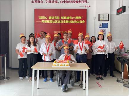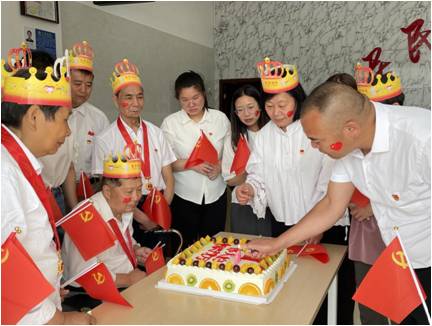 隨后,所有黨員同志們集體高唱《沒有共產(chǎn)黨就沒有新中國》,共同為祖國慶賀百年壽辰。接著大家圍在蛋糕旁,吹蠟燭,共同許愿祖國未來更加繁榮富強,人民生活更加富裕。