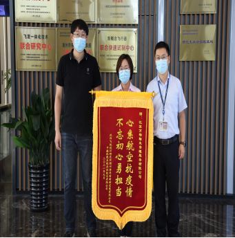 國(guó)慶節(jié)前期,沈陽(yáng)飛機(jī)設(shè)計(jì)研究所揚(yáng)州協(xié)同創(chuàng)新研究院有限公司和中航機(jī)載系統(tǒng)共性技術(shù)有限公司,將一面印有“心系航空抗疫情,不忘初心勇?lián)?dāng)”字樣的錦旗,送到了萬(wàn)楊物業(yè)沈揚(yáng)院項(xiàng)目經(jīng)理冷菲菲的手中,對(duì)項(xiàng)目員工優(yōu)異的工作表現(xiàn),表示了誠(chéng)摯的感謝!這是項(xiàng)目獲得的最高榮譽(yù)。隊(duì)員們紛紛表示:將繼續(xù)保持和發(fā)揚(yáng)恪盡職守、兢兢業(yè)業(yè)的工作作風(fēng),再接再厲,以更好的狀態(tài)優(yōu)質(zhì)完成甲方部署的各項(xiàng)工作任務(wù)。