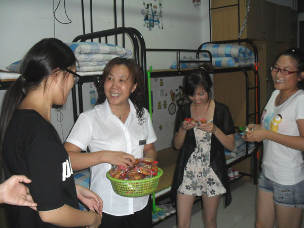 9月7日晚上,萬楊物業(yè)的宿管阿姨們帶著月餅來到了37#樓看望我們,并且對我們格外的關(guān)心和照顧,當(dāng)一盒盒包裝精美的月餅發(fā)放到大家手中的時候,宿舍里的氛圍一下達到滿點,這一盒盒月餅為宿舍增添了節(jié)日的色彩,更為大家?guī)砹藴嘏,這種溫暖是我們友誼的見證。大伙們都說萬楊物業(yè)的宿管阿姨們就像親人一樣,給我們家的溫暖,讓我們在這個節(jié)日里感覺不孤單。