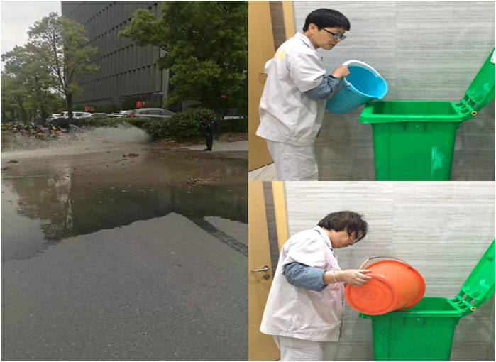 項目經(jīng)理李偉在群里看到這則消息之后,立刻用對講機呼叫工程人員,讓工程到外圍了解現(xiàn)場具體情況,同時通知保潔主管讓各樓層的保潔做好儲水工作,以防突然停水給正常工作帶來不便。保潔主管在接到這一通知后,馬上讓各樓層保潔用大垃圾桶蓄水,以備不時之需。工程到達(dá)現(xiàn)場仔細(xì)檢查了解到10分鐘后職場即將停水,保潔早在停水之前已將職場所需用水全部備好。之后整個接待中,職場雖然沒有水,最受影響的衛(wèi)生間一點沒有因為停水而變臟,保潔增加了衛(wèi)生間的打掃頻次,手動沖水,保證了衛(wèi)生間的干凈衛(wèi)生。