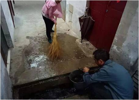 經(jīng)理助理王愛(ài)萍冒著大雨趕到43棟、46棟和49棟小高層,檢查地下車庫(kù)是否有積水、污水泵是否常運(yùn)行;當(dāng)發(fā)現(xiàn)地下車庫(kù)的排水槽水位已快到地面時(shí),呼叫前臺(tái)救急,工程華永道趕奔到現(xiàn)場(chǎng),和王愛(ài)萍一起用工具排水,處理急情。
