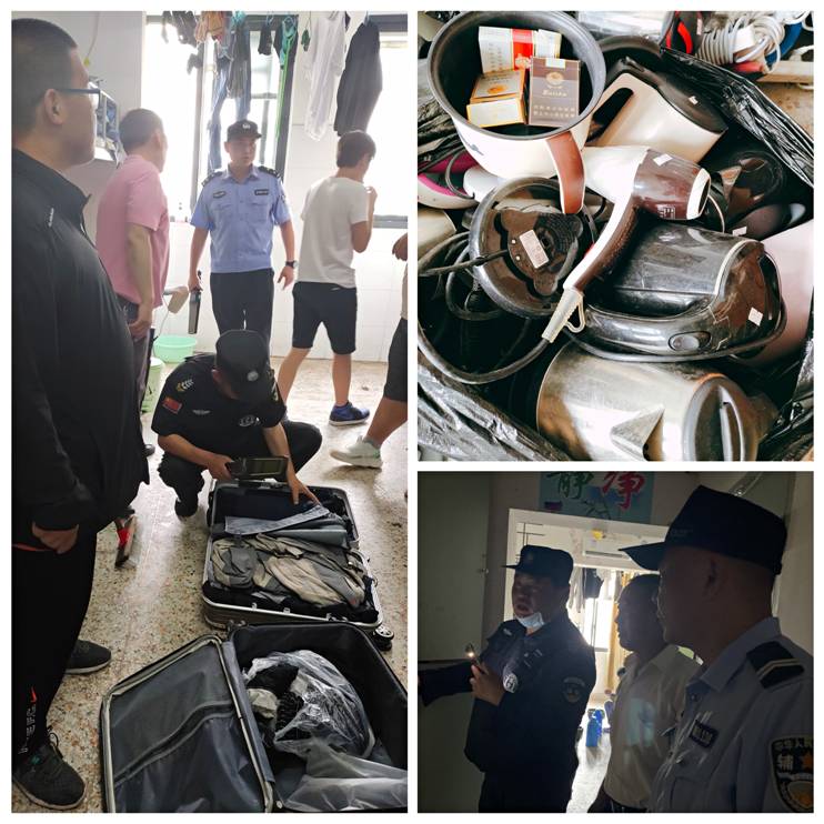 下午四點二十分,學校各系領導、班主任、保安和警察一起來到男生宿舍樓,大家分工明確各司其職,每層樓由一名警察、一名保安、一名宿管及各班班主任負責,逐間宿舍進行全面檢查,宿管老師提前將學生沒有回來的宿舍門一一打開,方便檢查,宿管把收繳上來的違禁電器,管制刀具收好。由于天氣炎熱,很快大家都汗流浹背,但是沒有人說一句怨言,大家心里緊繃安全之弦,沒有人怠慢松懈。同學們也意識到宿舍安全的重要性,積極自發(fā)的打開柜子、抽屜、行李箱配合檢查。學工處對檢查出違禁電器,管制刀具的同學進行了批評教育,讓其認識到事情的嚴重性,同學們也紛紛表示理解,并保證絕無下次。