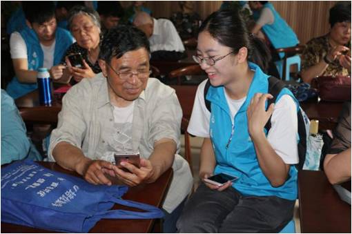 活動(dòng)中,青年志愿者們結(jié)合實(shí)際演示,分別指導(dǎo)了小區(qū)的“大齡學(xué)生”們?nèi)绾问褂?span>wifi、蜂窩移動(dòng)數(shù)據(jù)、鑒別詐騙短信,如何下載并使用手機(jī)軟件等等,同時(shí)還手把手地教會(huì)了老人如何用手機(jī)玩棋牌游戲,如何清理手機(jī)內(nèi)存等。