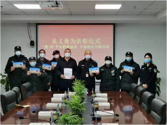 2月8日上午10點,灣頭鎮(zhèn)派出所二樓會議室,所領導和社區(qū)民警,經(jīng)揚州市公安局廣陵分局批準,為江蘇萬楊物業(yè)天順花園項目張永根等6名保安頒發(fā)書面表彰文件和獎勵。