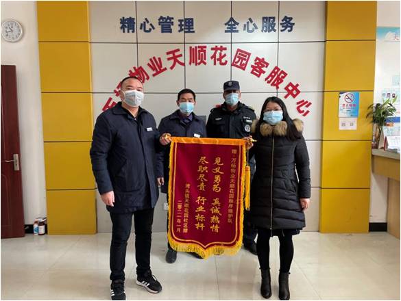 后據(jù)派出所調(diào)查了解,落水者為一88歲老太,系天順花園小區(qū)業(yè)主,因年紀大了在河邊不慎落水,幸虧物業(yè)人員及時趕到將她救起。天順花園社區(qū)知道情況后,代表業(yè)主家屬也給萬楊物業(yè)天順花園項目送來了“見義勇為、真誠熱情、盡職盡責、行業(yè)標桿”的錦旗,表達了高度贊揚和感謝! (江蘇萬楊物業(yè)天順花園 陳義軍)