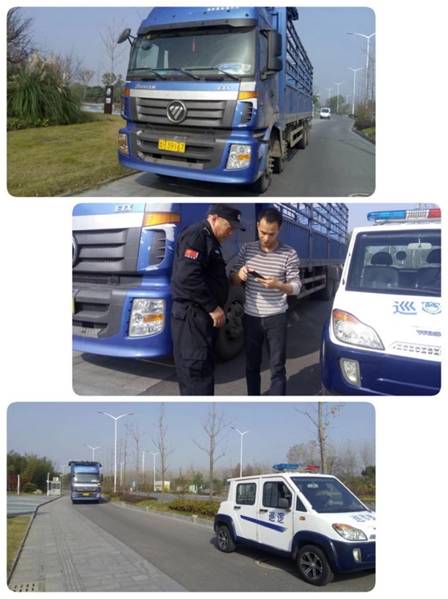 開始大家都認(rèn)為早晨霧大駕駛員可能作短暫的停留休息,可隨著時(shí)間的推移,眼看到了中午11點(diǎn)還是不見駕駛員將車開走,值日班長(zhǎng)董學(xué)虎于是撥打了110尋求幫助,無(wú)奈是外省籍車輛揚(yáng)州交警平臺(tái)一時(shí)無(wú)法查找到駕駛員的號(hào)碼。項(xiàng)目經(jīng)理和董學(xué)虎班長(zhǎng)一起對(duì)重卡再次進(jìn)行了仔細(xì)查看,發(fā)現(xiàn)駕駛室未鎖,進(jìn)入駕駛室后看到汽車鑰匙還掛在車上,想查看駕駛員聯(lián)系方式也沒有結(jié)果,但是在駕駛室內(nèi)一個(gè)快遞袋子上面收件人姓名和手機(jī)號(hào)碼引起了班長(zhǎng)董學(xué)虎的注意,正準(zhǔn)備撥打詢問時(shí),車外來(lái)了一位是30左右的年輕人自稱是該車的駕駛員,看到園區(qū)物業(yè)巡邏車誤認(rèn)為是交警查違很是緊張。班長(zhǎng)董學(xué)虎首先安慰駕駛員不要緊張,不是來(lái)罰款的,是他的汽車停錯(cuò)了地方影響了非機(jī)動(dòng)車和行人的通行,特別是盲人的通行。再者重型車輛自身都特別重,對(duì)人行道及盲道將會(huì)造成嚴(yán)重的破損。