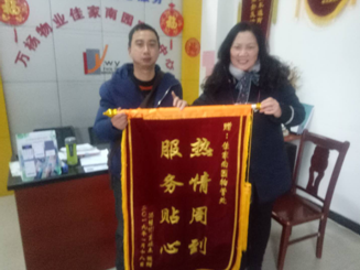 元月22號(hào)傍晚,佳家南園35-101的業(yè)主給物業(yè)服務(wù)中心送來(lái)了錦旗,錦旗上“熱情周到 服務(wù)貼心”的八個(gè)燙金大字,充分表達(dá)了業(yè)主的感謝之情,整件事情的緣由是這樣的: