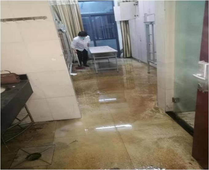 宿管班長(zhǎng)王春銀和夜班工程丁祥武到現(xiàn)場(chǎng)后,三個(gè)人一起用備用鑰匙打開(kāi)了進(jìn)戶門(mén),發(fā)現(xiàn)房間內(nèi)地面都是積水,還伴有惡臭,水是從衛(wèi)生間的蹲坑及地漏倒灌所致。經(jīng)仔細(xì)檢查后發(fā)現(xiàn),原來(lái)衛(wèi)生間的蹲坑內(nèi)有大量污物,導(dǎo)致下水不通,造成污水外溢。