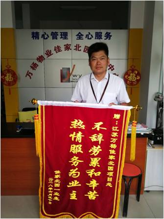 小小的人物,也能演繹出精彩的人生;小小的錦旗,也可以講述一段動(dòng)人的故事。7月1日一大早,佳家北園客服中心來了一對(duì)夫婦,給物業(yè)送來了一面錦旗,對(duì)物業(yè)人員表示感謝。