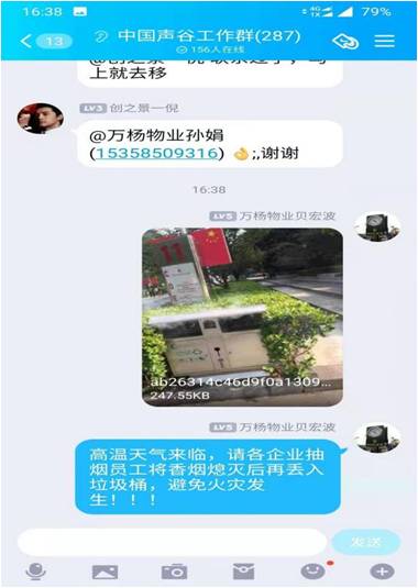 滅火后,三個(gè)人一起打開(kāi)垃圾桶查找原因,發(fā)現(xiàn)起火原因是因?yàn)闊燁^沒(méi)有掐滅所引起的,所幸保安細(xì)心發(fā)現(xiàn)及時(shí),避免了火災(zāi)隱患,針對(duì)此事,項(xiàng)目貝經(jīng)理將起火的照片原因發(fā)到了園區(qū)群里,提醒大家千萬(wàn)要注意未熄滅的煙頭別亂扔,杜絕此類事件的再次發(fā)生!! (江蘇萬(wàn)楊物業(yè)信息基地二期 貝宏波 )
