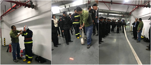 培訓結束后保安現場演習滅火器的使用方法和滅火流程,并練習如果收放、折疊消防水帶。