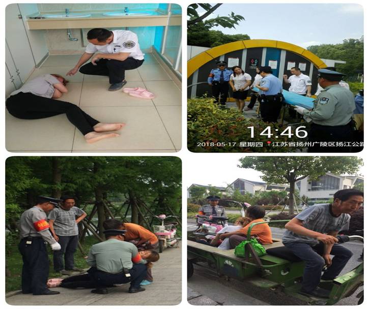 5月17日下午2點(diǎn)左右,江蘇萬(wàn)楊物業(yè)廖家溝城市中央公園管理處秩序維護(hù)隊(duì)隊(duì)員鄧壽春傳來(lái)信息,園區(qū)兒童林景觀女廁內(nèi)一名年輕女子昏倒在地,眾人叫之沒(méi)有反應(yīng),情況十分危急,保安班長(zhǎng)董學(xué)虎拔打了120和110報(bào)警救助電話。
