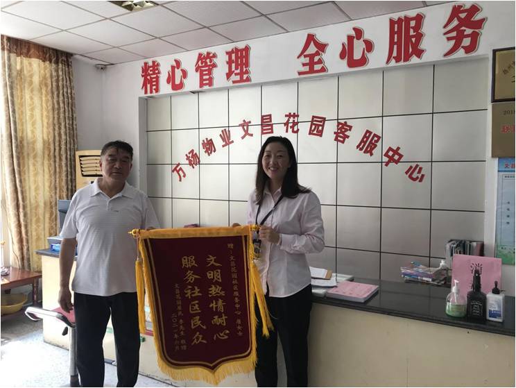 沒有跌宕起伏,沒有驚心動魄,有的僅僅是對工作的認(rèn)真負(fù)責(zé)和心系業(yè)主的情懷,錦旗既是對物業(yè)人的鼓勵,也是對大家工作的肯定。在今后的工作中,萬楊人將繼續(xù)堅持”精心管理、全心服務(wù)”的理念,不斷增強自身的工作能力和業(yè)務(wù)水平,提高服務(wù)意識、服務(wù)質(zhì)量和服務(wù)水平,使業(yè)主滿意度更上一層樓。(江蘇萬楊物業(yè)文昌花園項目部  俞莉莉)