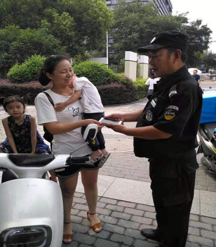 江蘇信息產(chǎn)業(yè)基地一期4號樓是園區(qū)商業(yè)配套樓,里面聚集了餐飲、超市等多家商戶,中午時分人流量最多。2019831日中午12點左右,保安隊長徐生明在4號樓商業(yè)正常維持秩序時,發(fā)現(xiàn)門口一輛踏板電動車的前位上有個手機,心想:估計是到4號樓吃飯時大意忘記拿手機,應該一會就會發(fā)現(xiàn)自己的手機沒了。為了防止手機被其他人員拿走,保安隊長當即就站在電動車旁,一邊幫助看管一邊等待失主,并將此事匯報與辦公室負責人。