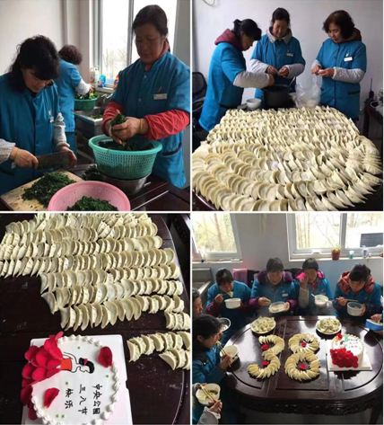 3月8日當(dāng)天,女員工例行放假一個上午。8時整,活動組織者帶領(lǐng)女同事們來到了中央公園能量站臨時活動點,展開了包餃子活動。由于準(zhǔn)備充分,包餃子的食材--“餃皮、菜餡、肉丁輔料”等都已經(jīng)備齊,女同事們到達(dá)后自發(fā)地分成了二組。一組用心制作餃子餡,力求餃子餡兒品味最佳;一組沿桌邊排開,你追我趕好似一場包餃子比賽,各自發(fā)揮包餃技能。短暫等待后,桌上一只只小巧玲瓏、品樣優(yōu)美的餃子就呈現(xiàn)在了大家的面前,整個活動現(xiàn)場籠罩著“我動手、我快樂”祥和快樂的氛圍。