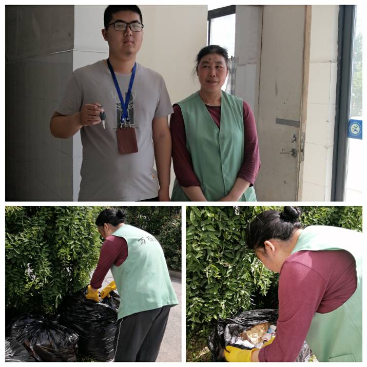 6月1號(hào)一早,張大姐特意提前到崗,看到昨天的垃圾環(huán)衛(wèi)還沒(méi)有拖走,于是決定把昨天的垃圾再次全部打開。經(jīng)過(guò)了一晚上,垃圾的臭味更加刺鼻,但張大姐腦中所想全是如何幫學(xué)生找到鑰匙,把臟和累全部拋之腦后,也正是因?yàn)檫@份強(qiáng)大的愛(ài)心和熱心,功夫不負(fù)有心人,在一番仔細(xì)查找后,鑰匙終于找到了。張大姐滿頭大汗,激動(dòng)的像個(gè)孩子,趕緊把鑰匙送到這位同學(xué)面前。