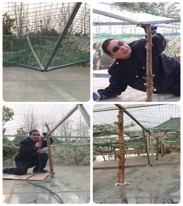 據(jù)甲方傳來信息,元月3日那場大雪壓塌的停車棚頂層支架防護網(wǎng),維修單位暫時來不了了。物業(yè)考慮第二場暴雪的到來,極有可能導(dǎo)致停車棚鋼化玻璃破損,甚至危及車棚內(nèi)多部車輛安全。于是決定組織人員自行排除隱患。韓國平、王榮根、藍小春三名隊員攜帶升降梯、便捷式電焊機對停車棚進行了焊接加固。