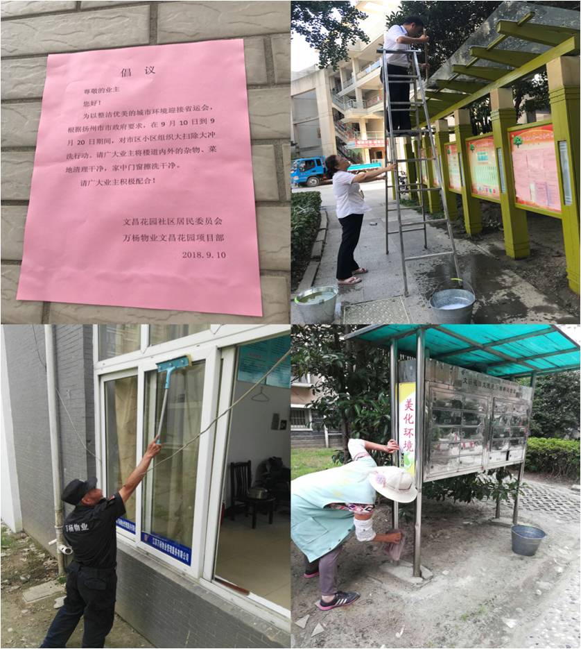 910日開始,江蘇萬楊物業(yè)文昌花園項目部根據(jù)市委、市政府統(tǒng)一部署和“全民總動員、全民大掃除、全程潔凈美”的要求,立即召開員工動員會,明確分工,落實到具體人員,組織保潔員、秩序員、工程、客服等全體員工對小區(qū)進行了大掃除行動。客服和保潔員們拿著掃把、簸箕、拖把等清潔工具,對宣傳欄頂、綠化帶、道路等衛(wèi)生死角進行了細致的清掃。秩序員們對門崗四周的環(huán)境衛(wèi)生也全面進行了清洗,擦窗戶的擦窗戶的、撿煙頭的撿煙頭的,沖地的沖地,忙得不亦樂乎。工程人員也不閑著,清理單元門頂平臺、商鋪平臺、樓頂平臺及巡查整個小區(qū)。一旦發(fā)現(xiàn)建筑垃圾立即督促居民們及時清運,制止衣物亂晾曬、電線亂拉亂接等不文明現(xiàn)象。大家齊心努力,從粗到細,以主人翁的姿態(tài)為喜迎省運會爭光添彩。(江蘇萬楊物業(yè)文昌花園項目部:俞莉莉)