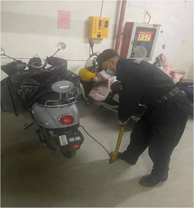 周班長(zhǎng)知道后,立刻陪同小姑娘來(lái)到了地下室查看電動(dòng)車,經(jīng)初步查看發(fā)現(xiàn)是電動(dòng)車后輪胎氣不足,就安慰說(shuō)先給輪胎打氣試試看,如果是其他地方出現(xiàn)問(wèn)題,會(huì)幫助她找電動(dòng)車維修師傅,并承諾,保證今天讓她順利的將車騎回去,聽到周班長(zhǎng)的話,小姑娘緊張的情緒終于松懈了下來(lái)。