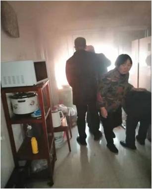 原來308業(yè)主在廚房間燉著雞湯,家里老人于大媽在客廳的沙發(fā)上睡著了,雞湯燒干了,也混然不知,仍然處于睡夢中,雖然廚房窗戶開著,但由于濃煙太大,導致整個樓道都彌漫著難聞的味道,到處是煙霧,于大媽愣是沒察覺,直到物業(yè)工作人員趕到敲擊大門,才把還在夢中的于大媽叫醒。