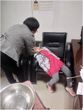 李隊趕緊把小女孩牽到了萊茵苑物業(yè)服務中心,客服員李虹立即幫她做了簡單的清洗,先幫孩子止住鼻血,讓她躺在沙發(fā)椅上。待小女孩情緒穩(wěn)定后,便問她家里人號碼,好聯(lián)系把她接回去,可是她太小了,不知道家人號碼。李虹就通過小孩的描述和對業(yè)主情況的了解,鎖定尋找對象后,趕緊打電話給該戶業(yè)主,經(jīng)過核實,確實找對了人,該業(yè)主在外有事,李虹向她說明了情況,她回復立馬回來,但路程需要半小時。
