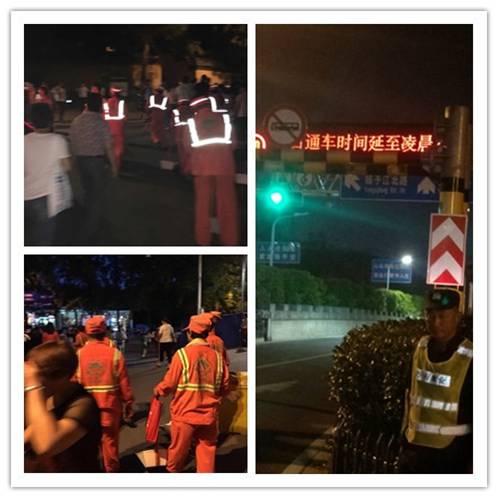 7月30日晚上6:30江蘇萬楊物業(yè)道路保潔部邗江和瘦西湖兩個(gè)項(xiàng)目的現(xiàn)場(chǎng)保潔人員就全體集中,由項(xiàng)目經(jīng)理就此次民間大型活動(dòng)的安全及衛(wèi)生保障工作做了統(tǒng)一部署,包括人員分配、工作時(shí)間、注意事項(xiàng)及應(yīng)急預(yù)案等。從7點(diǎn)開始,所有崗位人員進(jìn)入各自保潔區(qū)域開始工作,大家拿著掃帚,簸箕值守在各自的保潔區(qū)域。即使30幾度的高溫, 每個(gè)員工都按規(guī)定穿著反光工作服,既是為了工作更是為了安全,哪怕是大汗淋漓,依然認(rèn)真地在各自的崗位上清理著雜物。他們穿梭在香客大軍中,一邊干活一邊還要避讓行人,注意自身安全。真是“兩耳不聞窗外事,一心只將垃圾掃”。從晚上7點(diǎn)到第二天凌晨3點(diǎn),中途只是稍作休息后立即投入工作。3:00以后,另一班的同事過來接崗,繼續(xù)工作至天明這次保障工作才算正式結(jié)束。