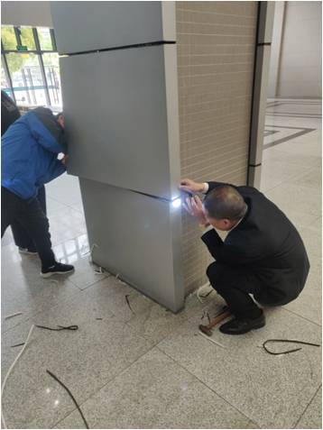 貝經(jīng)理了解情況后,立刻帶領(lǐng)工程主管董劍珉及宿管班長(zhǎng)王春銀到現(xiàn)場(chǎng)查看,仔細(xì)聆聽后確實(shí)聽到了立柱里面?zhèn)鱽?lái)的微弱的貓叫聲,為了解救小貓,他們現(xiàn)場(chǎng)商量后決定將立柱的外立面拆除,拆除過(guò)程中可能聲音大了,驚動(dòng)了小貓,叫聲越來(lái)越大。
