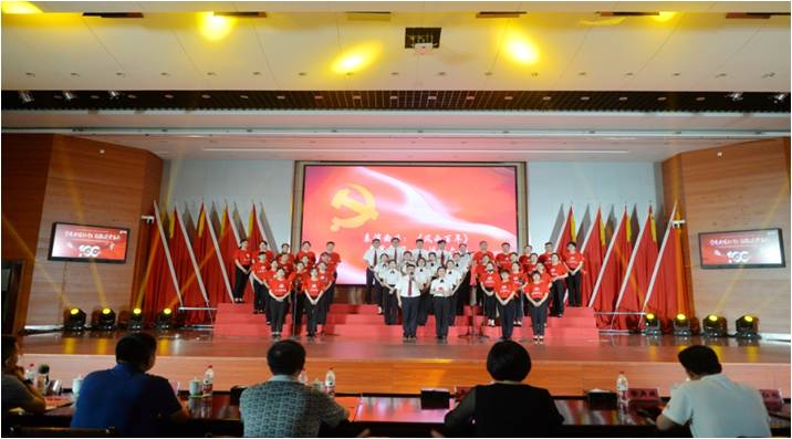“風(fēng)雨同舟慶百年,攜手奮進(jìn)譜新篇”運(yùn)作六部的合唱“風(fēng)雨百年”拉開了匯演的序幕。嘹亮的歌聲響徹整個(gè)會場。從南湖紅船劃過舊時(shí)代暗涌的那一刻起,鮮紅的黨旗永不褪色,運(yùn)作六部44名青年骨干以及黨員代表共同歌頌共產(chǎn)黨帶領(lǐng)中華兒女歷經(jīng)百年風(fēng)雨的盛世華章,表達(dá)著物業(yè)人炙熱的愛黨情。