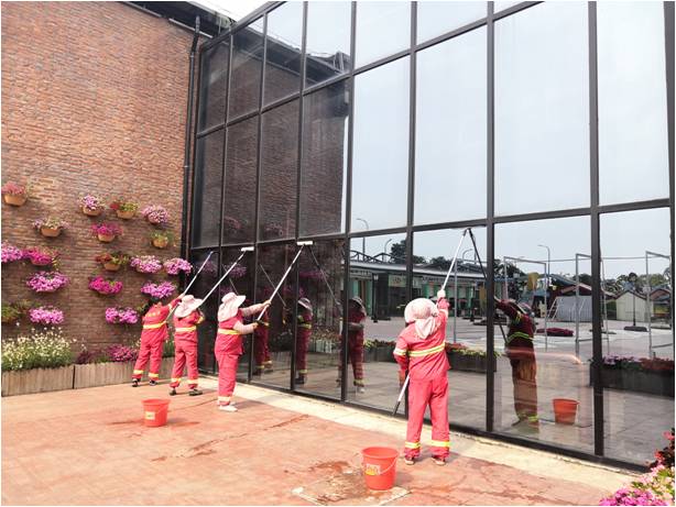 在比賽現(xiàn)場,保潔阿姨們穿著整齊的工作服,人手一套擦玻璃工具,在指定的比賽區(qū)域各自就位,隨著項目經(jīng)理的一聲令下,比賽開始,大家憑著豐富的保潔經(jīng)驗和平時鍛煉出來的嫻熟的擦玻璃技術(shù),有條不紊緊張有序地進行著比賽,萬楊物業(yè)馬可波羅花世界項目李經(jīng)理充分利用物業(yè)服務(wù)保潔時間,既組織員工進行擦玻璃技能比賽,同時也做好了玻璃清潔工作。比賽現(xiàn)場一片熱鬧,吸引了大批的游客駐足觀看,并得到了大家的一致好評,紛紛感嘆:刷新了對保潔的第一印象,保潔工作已經(jīng)不僅僅只是掃掃地而已了。事實證明,隨著居民生活水平的提升,保潔工作已是一項具有科技含量的事務(wù)性工作了。