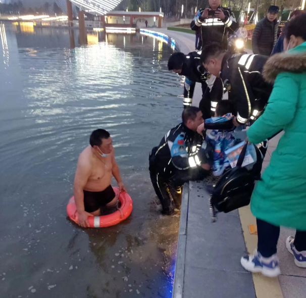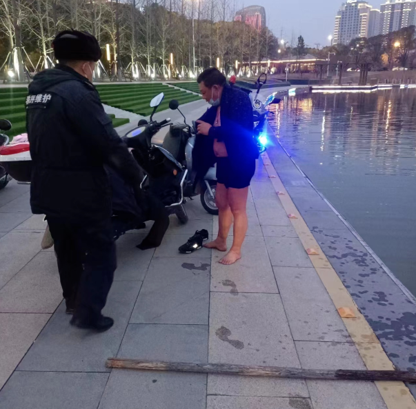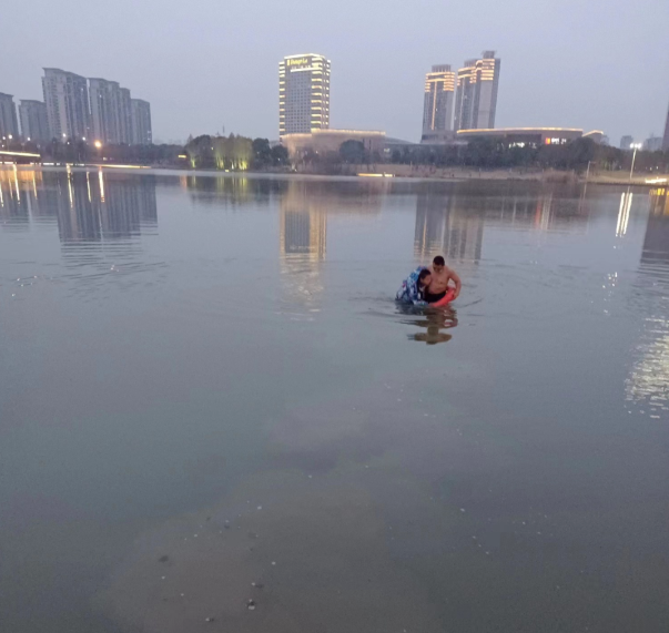2月5日下午5點40分左右,明月湖公園保安李志明正在巡查,巡至明月湖北岸時聽到一名女性大聲呼救。李志明趕忙跑過去,發(fā)現(xiàn)湖中有一名男孩在水中掙扎,男童穿的羽絨服,加之因為恐懼不斷掙扎,在衣服的浮力下越飄越遠,岸邊的女士急的哭喊著救命。李志明沒有絲毫猶豫,“我來!我會游泳!”隨后立即脫去衣服,在就近的地方拿起救生圈“噗通”一聲跳下水去。