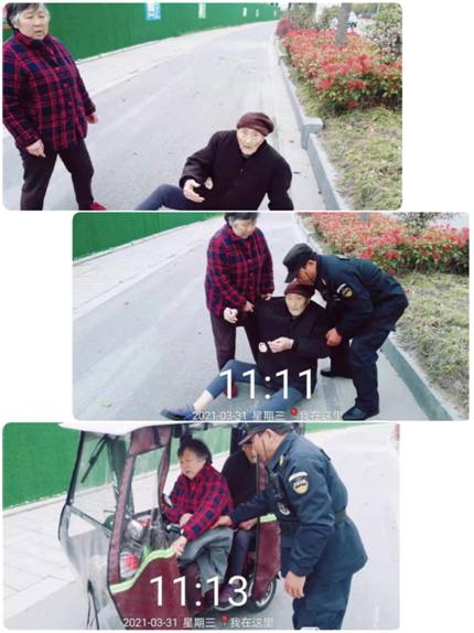 萬(wàn)楊物業(yè)中央公園車巡崗值日班長(zhǎng)董學(xué)虎剛好巡邏至此,看見有人摔倒路邊,立即下車查看;了解得知:摔倒的老人并無(wú)大礙,今年已經(jīng)90多歲,家住天順花園105棟,在家悶得慌,正值春暖花開,想出來(lái)轉(zhuǎn)轉(zhuǎn)透透空氣,于是70歲的女兒用電動(dòng)三輪車帶著他。經(jīng)過濱水路中央公園時(shí),老人看到公園景色宜人,興致勃勃的想下車自己活動(dòng)活動(dòng),結(jié)果腿一軟摔倒了在地;由于老人身材高大魁梧,董班長(zhǎng)單憑個(gè)人力量難以將老人扶起;于是通過無(wú)線對(duì)講平臺(tái)呼叫臨近區(qū)域同事李明俊增援……