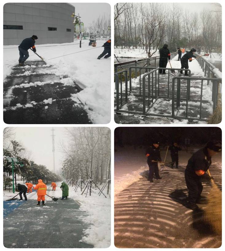 根據(jù)上級部門的通知要求,以及氣象部門的預(yù)警,萬楊物業(yè)駐廖家溝城市中央公園管理處,就大雪來臨前的鏟雪預(yù)案進(jìn)行了充分的準(zhǔn)備。鏟雪用具:鐵鍬、自制的木質(zhì)推板等,均早早的分發(fā)到各個崗位。根據(jù)項(xiàng)目負(fù)責(zé)人的指令要求,4日早晨6點(diǎn)30分前,夜班隊(duì)員鏟雪行動已先行展開,白班隊(duì)員到崗公園能量站區(qū)域已清理完成,到崗的白班隊(duì)員在班長嚴(yán)長國、董學(xué)虎的帶領(lǐng)下,手持鏟雪工具,到達(dá)公園各主要出入口,集中清除夜間積雪。雪不停的下著,但隊(duì)員們鏟雪保暢通、保平安的熱情絲毫未減。7點(diǎn)20分到崗的園區(qū)保潔,根據(jù)項(xiàng)目的先前指令也加入了鏟雪的大軍。