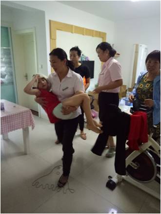 到了業(yè)主家,看見一個瘦瘦的小孩趟在沙發(fā)上,旁邊桌上扔著一堆沾著血跡的面紙,奶奶在旁邊著急的束手無策,看見物業(yè)人員到了,奶奶都著急的說不出話來,小王一邊安慰著奶奶一邊趕緊上前查看,看見小孩鼻子還在流血,建議說:“這樣不行,盡快送社區(qū)醫(yī)院,我先聯(lián)系我們小區(qū)車管員,請他把巡邏車開來!辈灰粫策壾嚲蛠砹,王福萍抱起小孩就下樓,上了巡邏車直奔社區(qū)醫(yī)院,到了社區(qū)醫(yī)院,醫(yī)生檢查了一下說,這邊無法處理趕緊去蘇北醫(yī)院,小王掏出手機(jī)就為業(yè)主聯(lián)系出租車,孩子奶奶連聲說:“謝謝!謝謝!”小王和小武直到送她們上了出租車才放下心來。