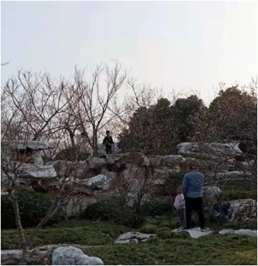 但是,仍然有一些不文明的現(xiàn)象存在。兩個年輕的女士坐在景觀燈上看手機(jī);一名男子懷抱小孩在景觀設(shè)施上玩耍;更有幾名游客帶著小孩游玩時,置一旁“禁止攀爬”的警示牌于不顧,任由孩子爬到長有青苔的假山上嬉戲,稍有不慎就有跌落的危險……正在執(zhí)勤的保安隊員曹之都立刻上前,耐心勸導(dǎo),動之以情,曉之以理,大家都及時糾正了自己的不文明行為。