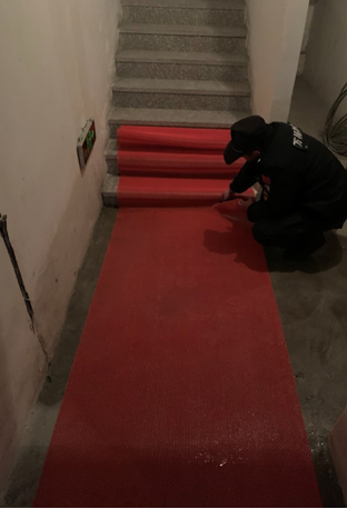 考慮到走公共維修基金需要一段時(shí)間,為了不影響業(yè)主的出行,物業(yè)中心安排保潔每天定時(shí)去該樓道查看,一旦有水就進(jìn)行清掃,并且購買了10米長的紅色防滑墊進(jìn)行鋪設(shè)。業(yè)主們對(duì)于物業(yè)采取的應(yīng)急措施表示了肯定。