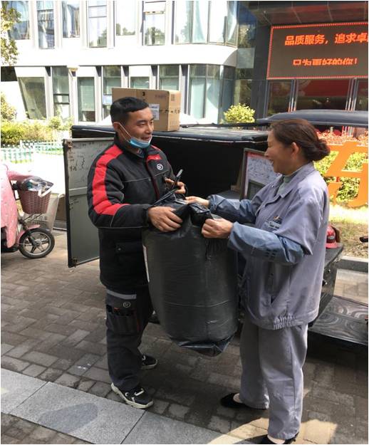3月25日上午九點(diǎn)江蘇萬(wàn)楊物業(yè)京東項(xiàng)目的保潔員在去倒垃圾的路上就遇到這么一個(gè)急沖沖的快遞員?爝f員一邊騎著電動(dòng)車一邊打電話乃至一個(gè)大的包裹從車上滾落都不知道,保潔員嚴(yán)慧看到后立刻大聲喊:“小伙子,快遞掉了!庇捎诳爝f員在打電話沒(méi)有聽(tīng)到嚴(yán)慧的呼喊,車子一下子開(kāi)遠(yuǎn)了。嚴(yán)慧只好帶著這個(gè)大包裹來(lái)到物業(yè)辦公室交給項(xiàng)目經(jīng)理陳青青。