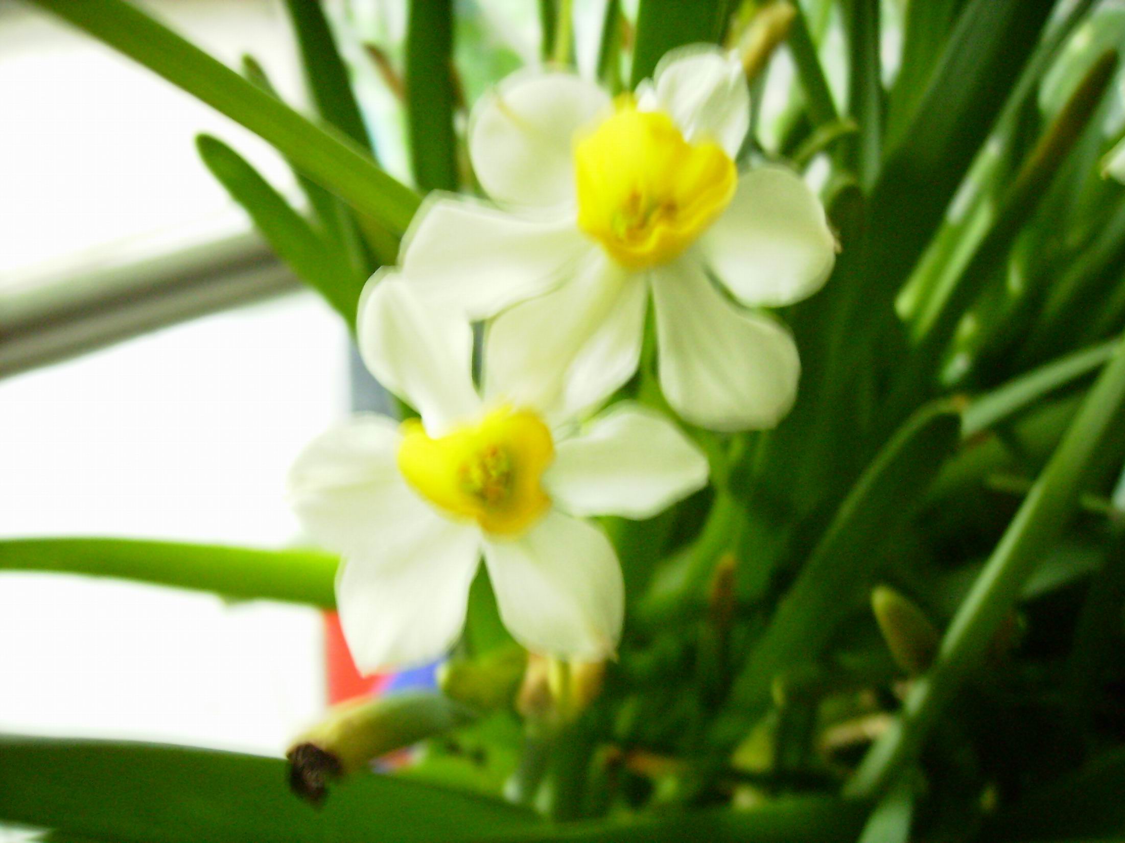 電氣石于1月16號前后泡在水中,開始栽培水仙,兩盤花已開。